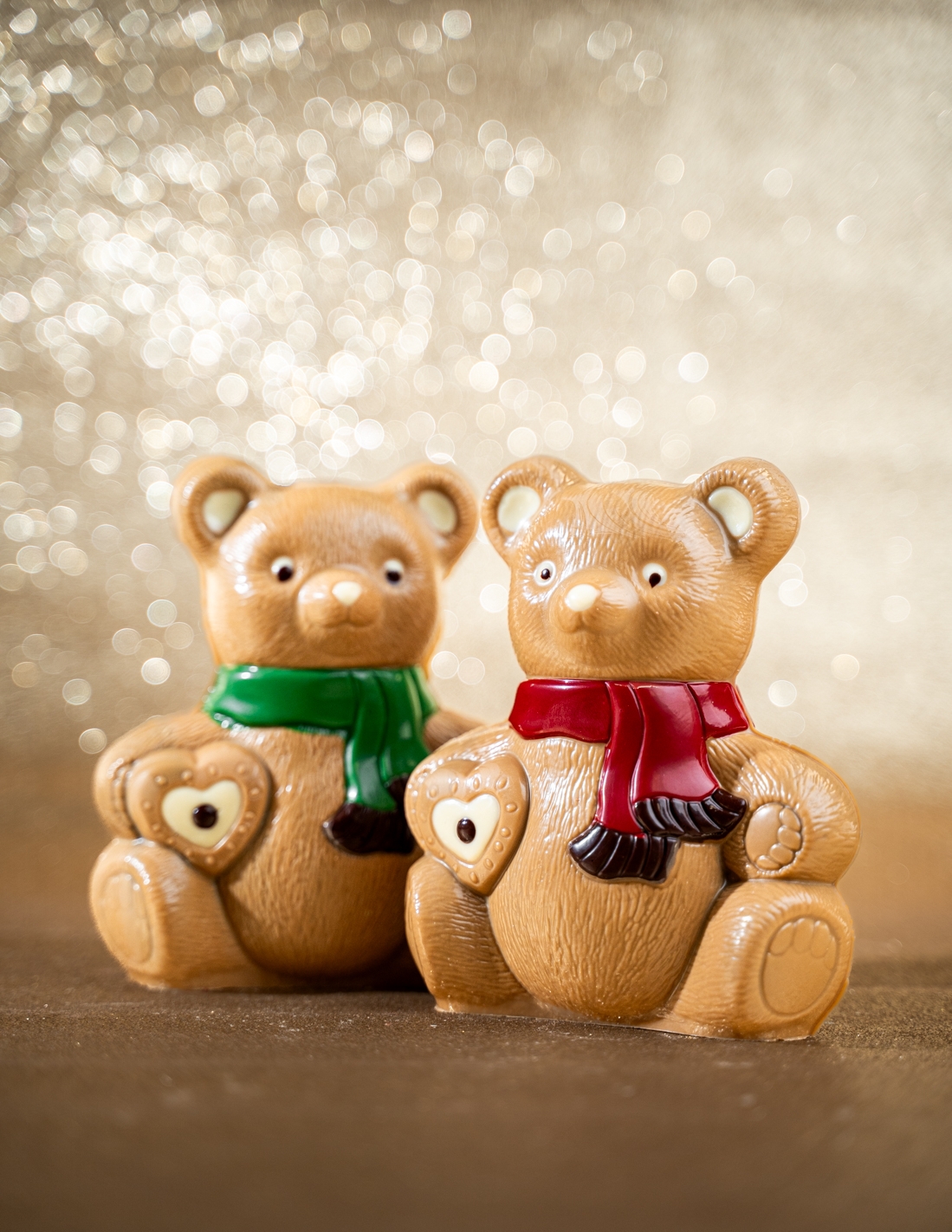 This delicious chocolate, available in dark or milk chocolate, is coated in blond chocolate for a golden and indulgent touch. His adorable scarf and little heart make him the perfect companion to celebrate the magic of the holidays. Simon is filled with festive Christmas treats, for even more sweetness and indulgence to share.